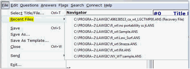 The program now lists your 7 most recently saved files (including a backup of the last file used) by selecting Recent Files from the File menu once inside the Lawgic program.