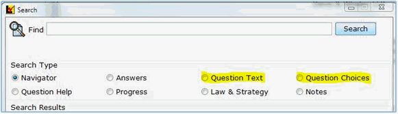 Our Search feature (on Menu Bar) allows a user to find specific text within sections of the program. We have added two new areas for searching: ‘Question Text,’ meaning the text that makes up each question, and ‘Question Choices,’ which are the options shown for each question.